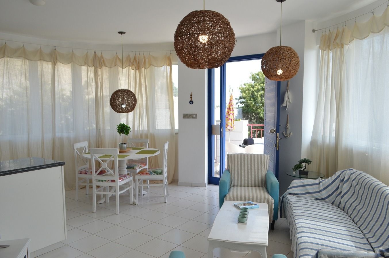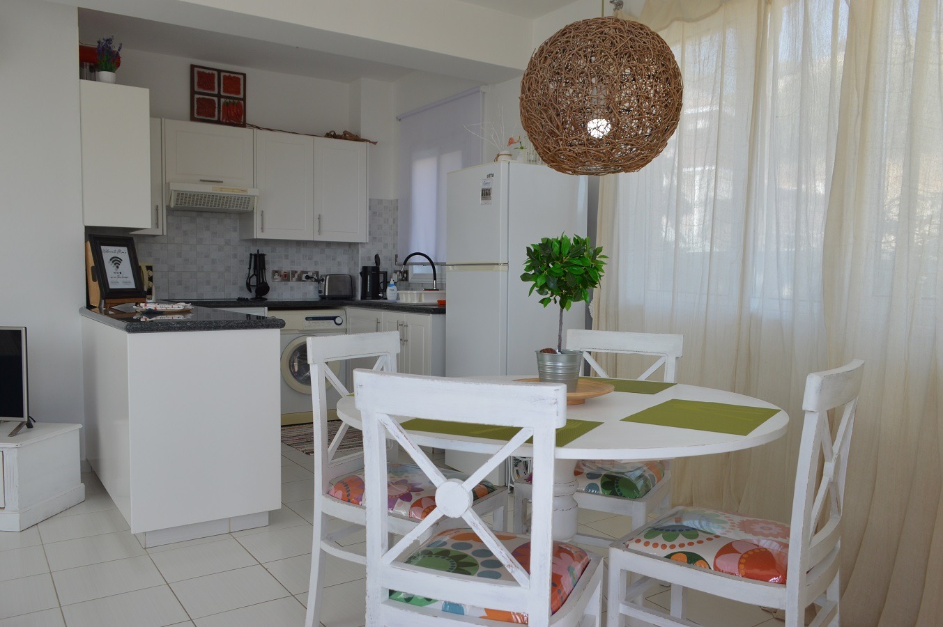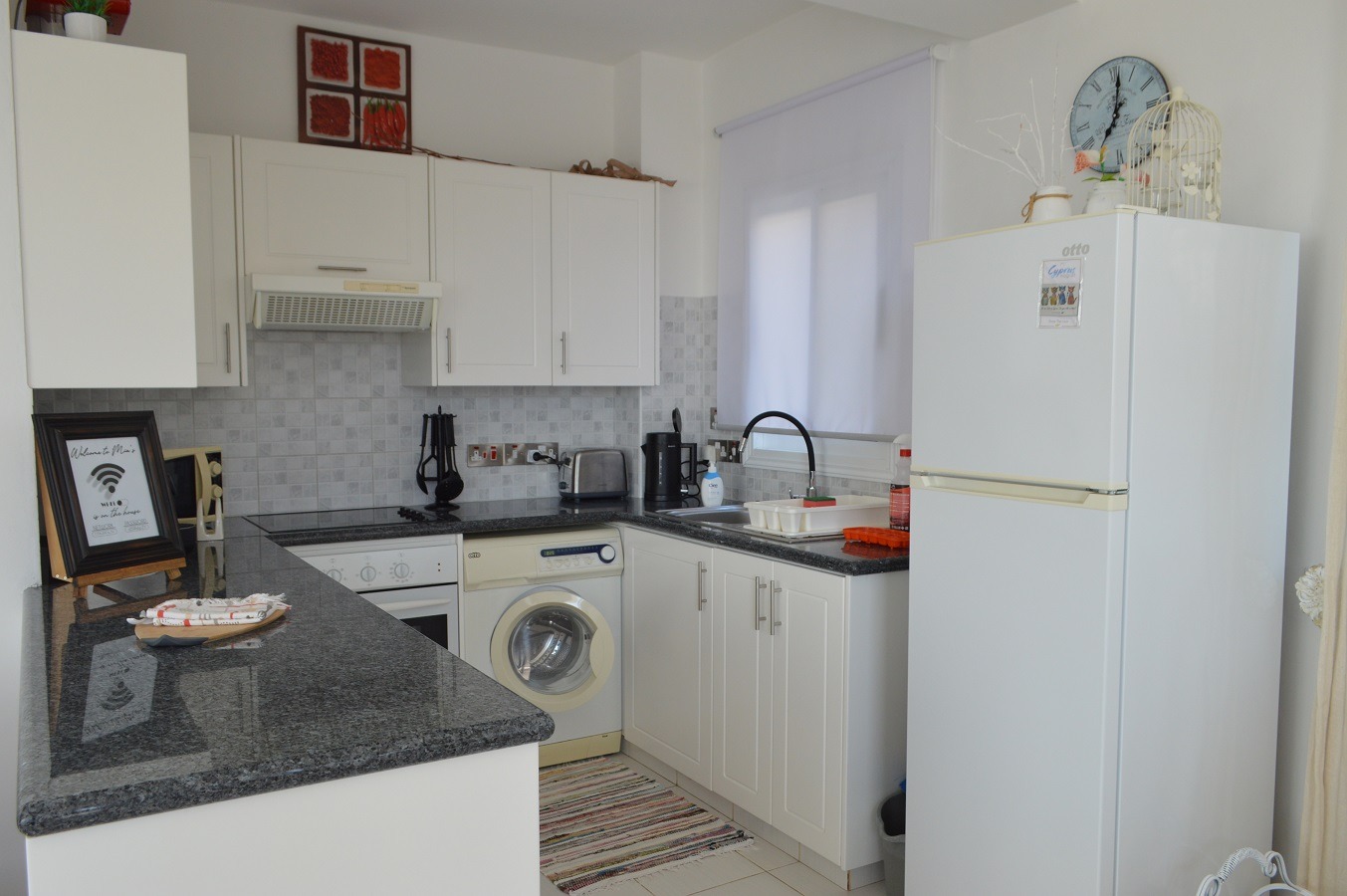 The entrance leads to the spacious Open Plan Living/Dining Area with the Well-Equipped Kitchen with Granite Work Tops.
